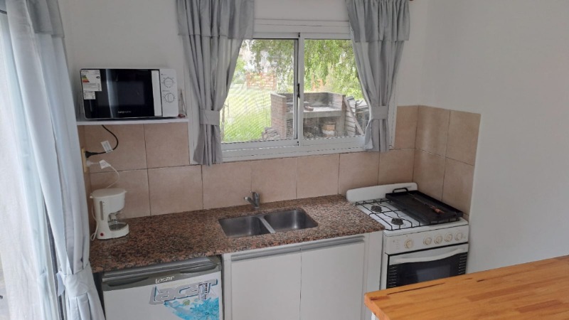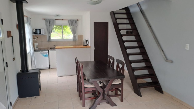 La propiedad cuenta con cocina integrada al comedor con barra desayunadora, baño completo con ducha, en planta alta cuenta con dos habitaciones una con salida a la terraza. Amplio parque con parrilla.