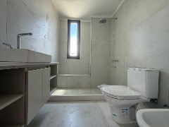 En primer piso esta unidad cuenta con un amplio living comedor con cocina integrada por barra desayunadora, balcón corrido al frente con parrilla, espacio de lavadero, baño completo con ducha, habitación con placard, habitación escritorio y habitación principal con vestidor y baño en suite.