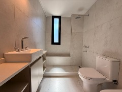 En primer piso esta unidad cuenta con un amplio living comedor con cocina integrada por barra desayunadora, balcón corrido al frente con parrilla, espacio de lavadero, baño completo con ducha, habitación con placard, habitación escritorio y habitación principal con vestidor y baño en suite.